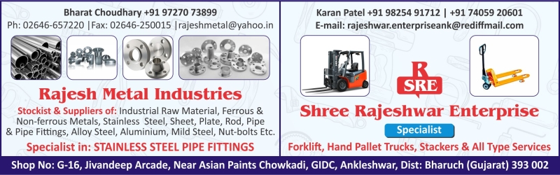 Shop No: G-16, Jivandeep Arcade, Near Asian Paints Chowkadi, GIDC, Ankleshwar, Dist: Bharuch (Gujarat) 393 002